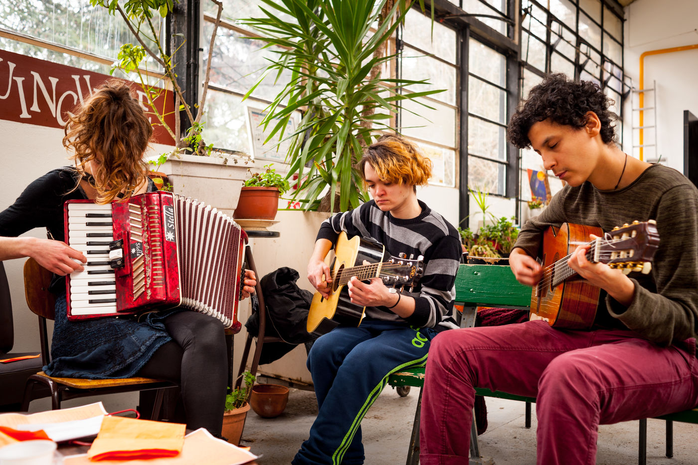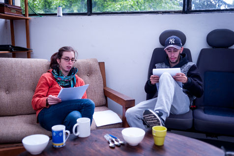The primary goal of the school company is to do theatre together - and therefore, to make theatre a meeting. This vision makes it possible to exclude the notion of art therapy, with which this structure does not wish to be associated. The Théâtre du Fil, combining social and artistic aspects in its own way, includes an educational team (educators' actors and educators' actresses), which is an integral part of the troupe. Thus, young people and educators are "on the set" or "on the carpet", and also share moments of daily life.