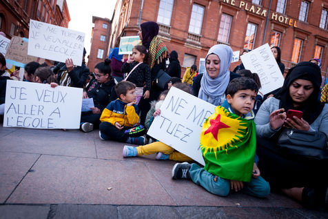 On October 16th 2019, the Kurdish community of Toulouse organised a rally on the Place du Capitole with children, who are boycotting the school today, in order to alert public opinion and show their anger at the attack on the Rojava by Turkish President Erdogan.