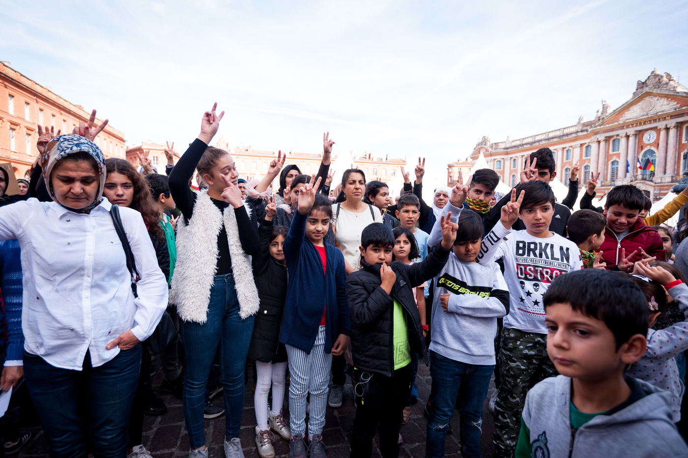 Mercredi 16 octobre 2019, la communaute Kurde de Toulouse organisait un rassemblement place du Capitole avec leurs enfants, qui boycottait l'école ce jour, afin d'alerter l'opinion et montrer leur colère face à l'attaque du Rojava par le président turque Erdogan.