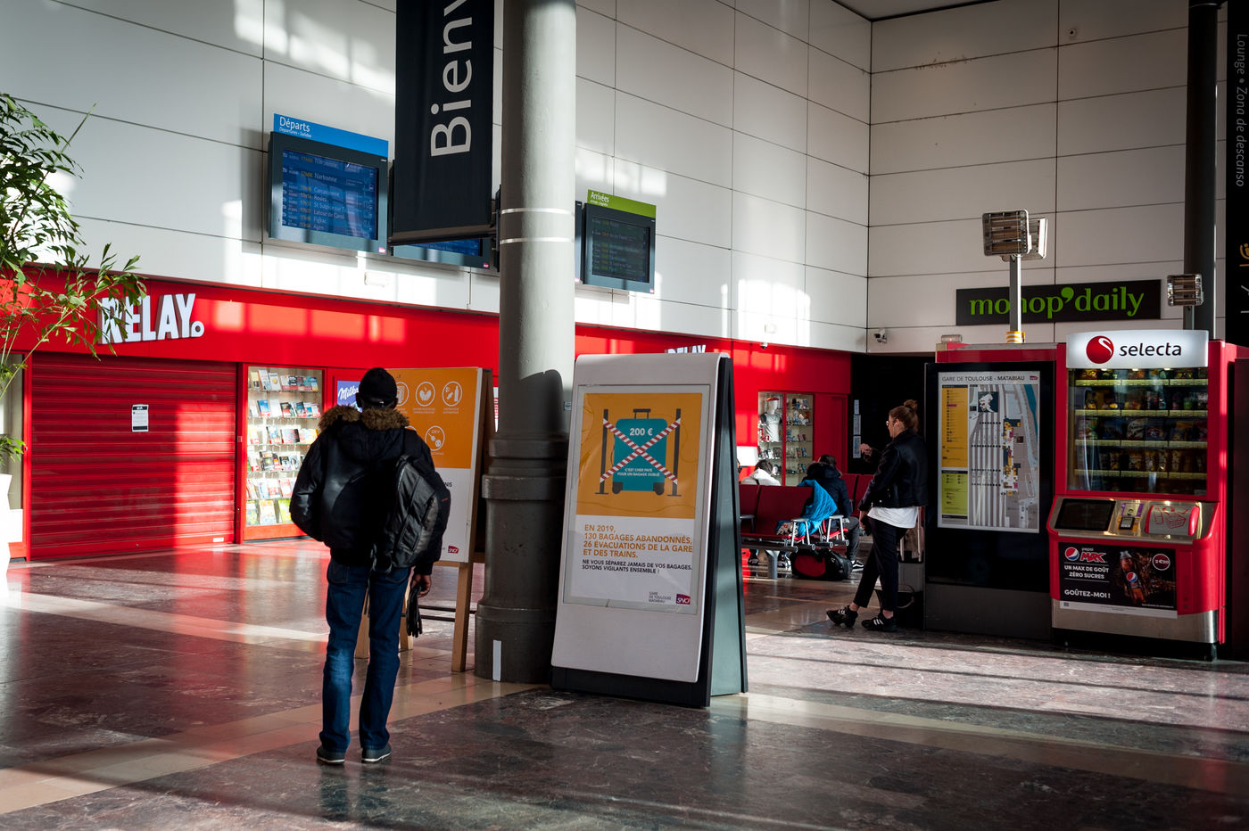 Quelques personnes sortent, mais s'eparpillent dans l'espace disponible, accentuant le social distancing que nous pratiquons tous maintenant.