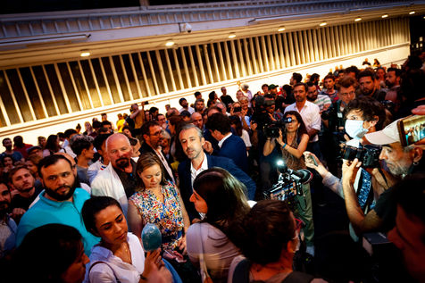 Antoine Maurice, candidate on the Archipel Citoyen list for the 2020 municipal elections, and opponent of the outgoing mayor Jean-Luc Moudenc speaks at the J'GO restaurant after the announcement of the results of the second round, won by the right list.
