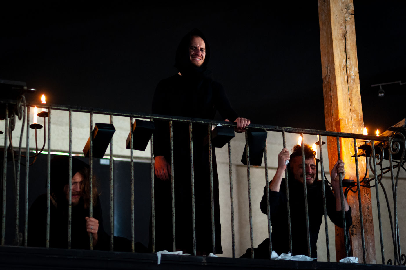 Tout y est joué, mis en scène, mais la douleur et la peine affichées sur les visages sont bien réelles, comme si ensemble spectateurs et acteurs franchissaient un cinquième mur, prolongeant le jeu dans le réel et créant une sensation de malaise en traversant le Pavillon Mazar.