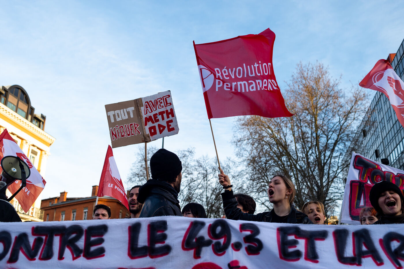 Over 500 people gathered in Toulouse on March 20, at the time of the motion of no confidence against President Macron's government. The motion was finally rejected, only by 9 votes.