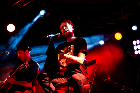 French singer Cyril Mokaiesh at the Jean Ferrat Festival on July 20, 2024, in Antraigues-sur-Volane (Ardèche).