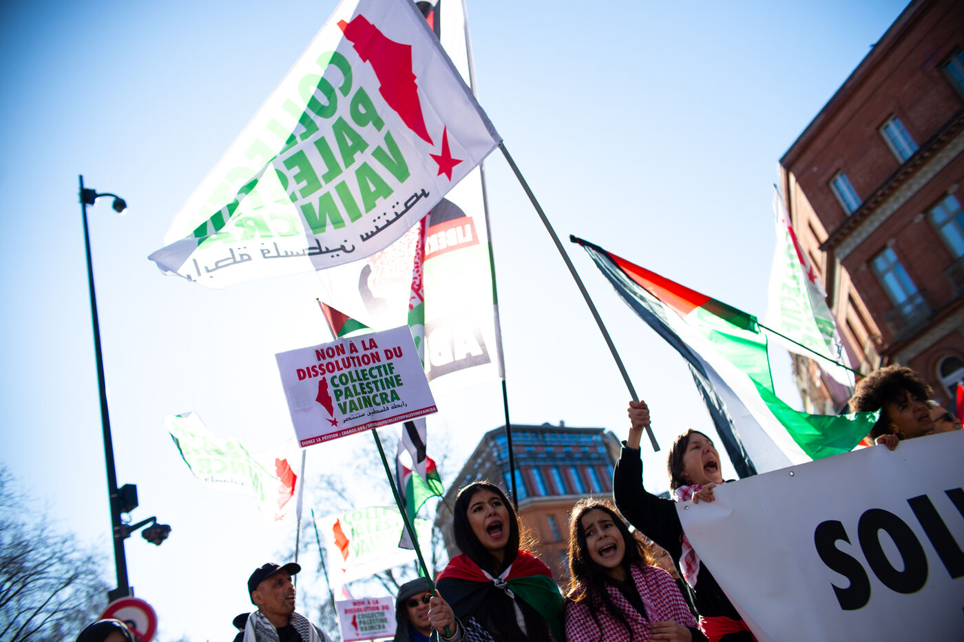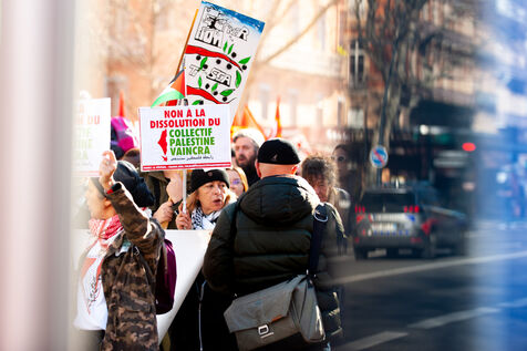Demonstration against the dissolution of the Palestine Vaincra collective in Toulouse on February 1st, 2025