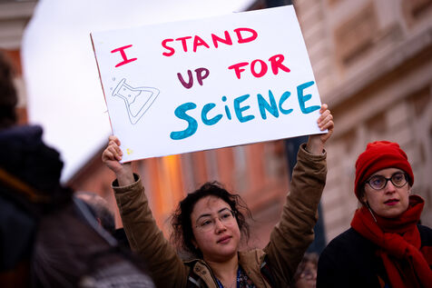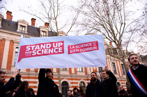 Six hundred people gathered in Toulouse outside the Quai des Savoirs on March 7, 2025 in support of the US Stand up for Science movement, to protest the attacks on the scientific community, research and civil rights underway in Trump's United States.
