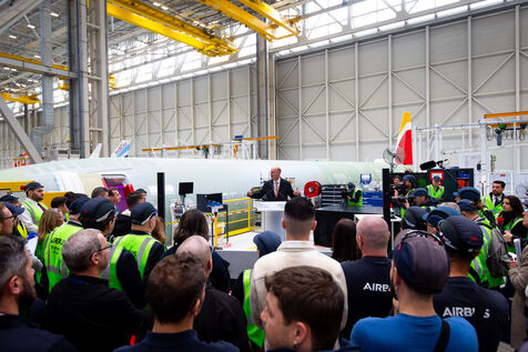 Eric Lombard, ministre de l’Economie, des Finances et de la Souveraineté industrielle s'est rendu en Haute-Garonne le 13 février 2025 et a visité la chaîne d'assemblage de l'Airbus A321 à Cornebarrieu. Guillaume Faury, président exécutif d’Airbus Group était présent pour exposer la stratégie du groupe.