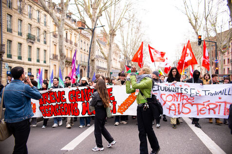 Protest against austerity policies and budget cuts by Emmanuel Macron's government particularly in research and higher education. Toulouse, March 13, 2025.
