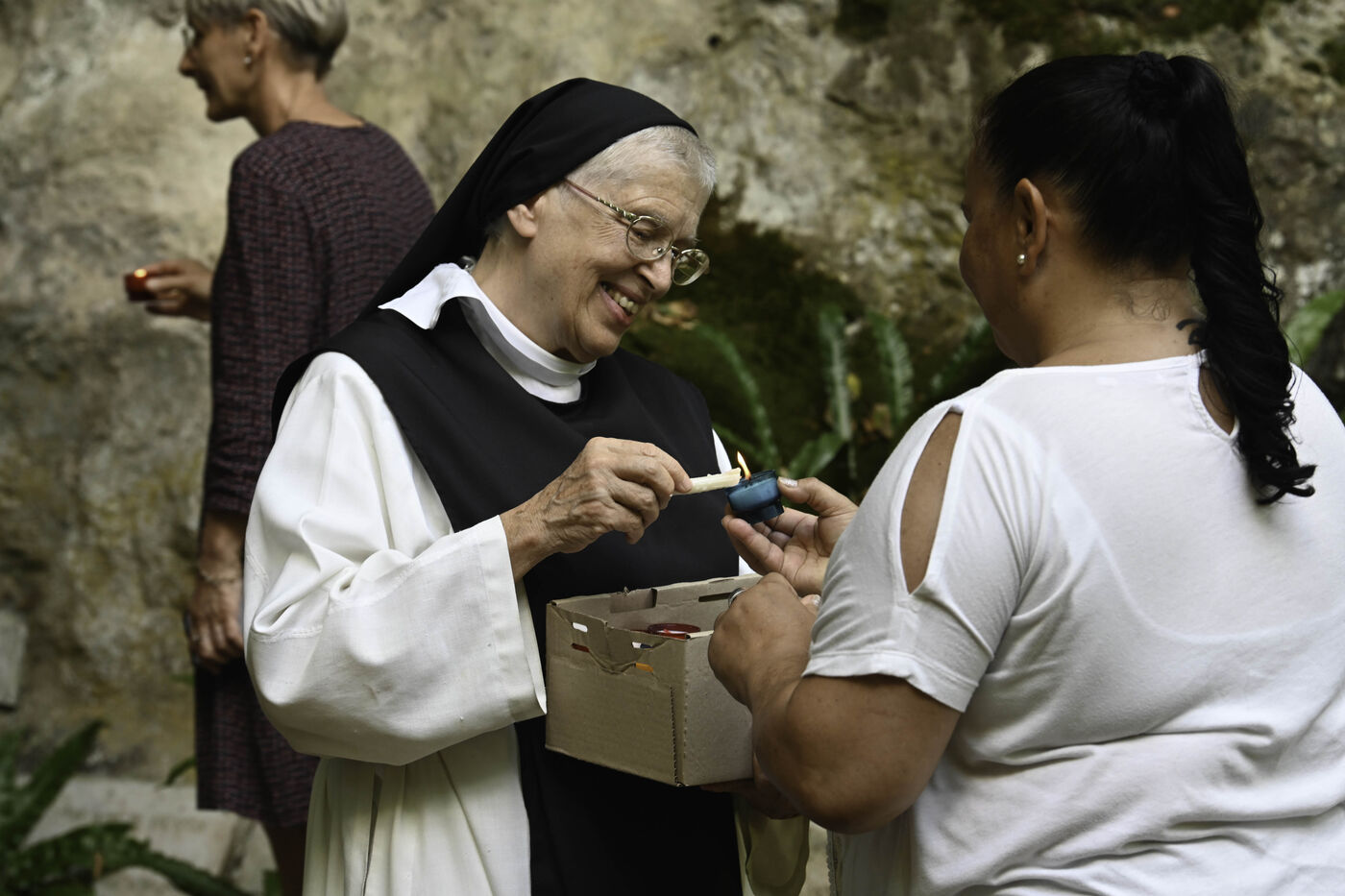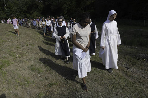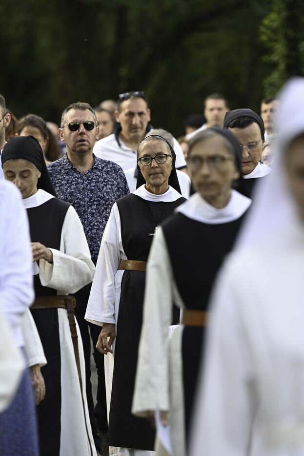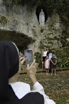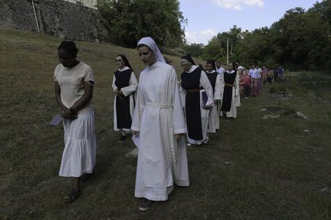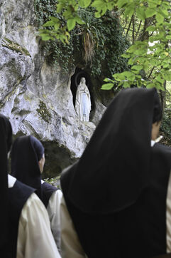 At the end of the Vespers service, at the end of the afternoon, the Community of Cistercian nuns and the laity begin a procession to the grotto located on the grounds of the abbey and the highlight of this ceremony.