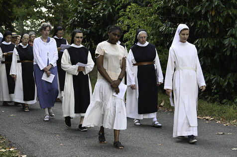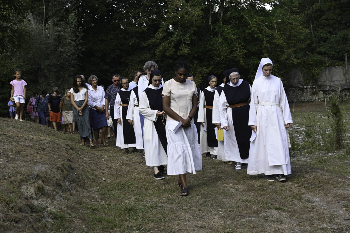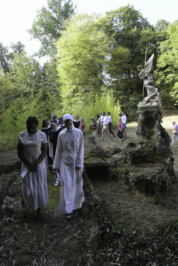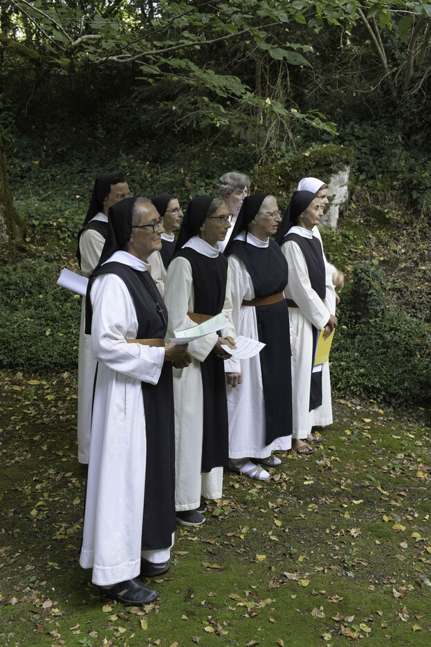 A l?issue de l?office des Vêpres, en fin d?après-midi, la Communauté des moniales cisterciennes et les laïques entament une procession jusqu?à la grotte située sur le domaine de l?abbaye et point fort de cette cérémonie.