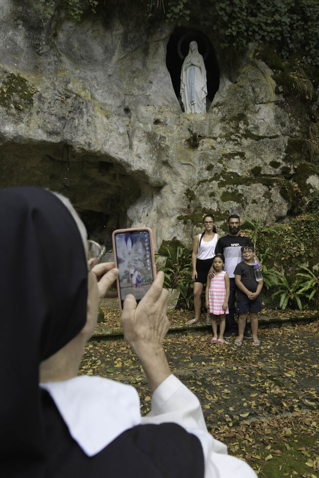 Réplique à l?identique de la très célèbre grotte de Lourdes, la grotte de l?abbaye du Rivet veille aujourd?hui au repos de soeur Gertrude, cousine de Bernadette Soubirous.