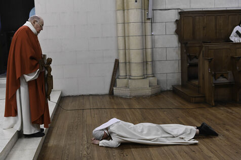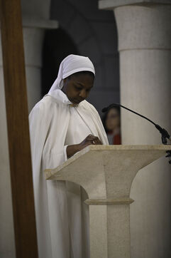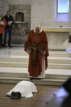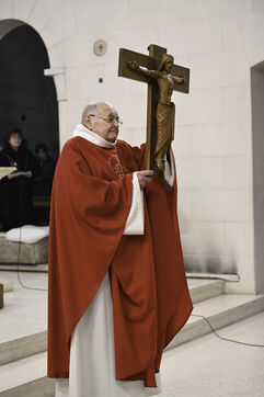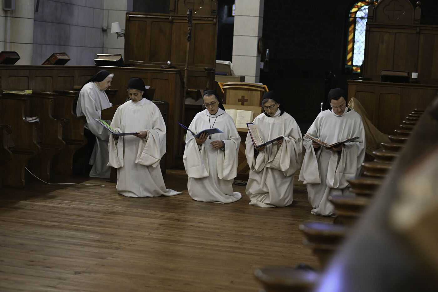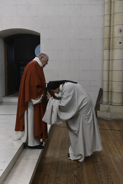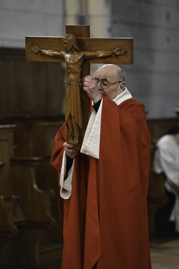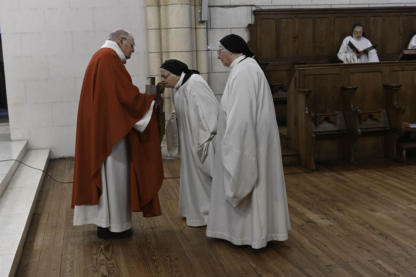 At Sainte Marie du Rivet Abbey, Good Friday opens in silence. The entry is marked by a unique gesture during the year: the prostration of the priest. Then, the Cistercian nuns resume singing, prayers and readings with the abbot. Another strong point of the service: the presentation and veneration of the Cross. The celebrant goes to get the Cross then goes back to the altar, pausing in the middle of the church, then the mother abbess and the nuns come to prostrate themselves and kiss the Cross. At the end of the service, a Eucharistic communion takes place where the Cistercian community of the abbey then the faithful present receive the hosts consecrated the day before, during the Maundy Thursday mass.