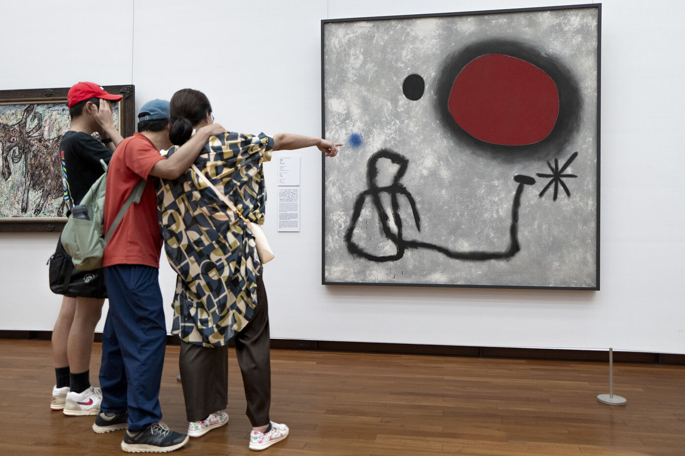 Joan Miró, Painting 1953, National Museum of Western Art in Tokyo, Japan, on 19 September 2024. Built in 1959 by the Franco-Swiss architect Le Corbusier and enlarged since, the museum houses a powerful painting by Joan Miró. Its red disc takes visitors back to the symbolism of the rising sun, the emblem of the Japanese national flag.