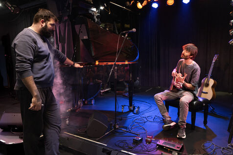 In November 2024, young guitar virtuoso Vincent Schmidt takes the stage in a duo with Natan Niddam on piano at the club L’Esprit Frappeur for the soundcheck of the premiere of their album We'll Get There, Eventually.