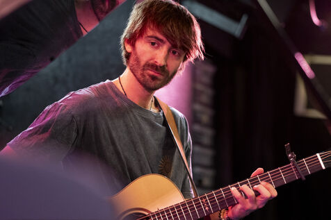 Vincent Schmidt, jeune guitariste virtuose, est sur scène en novembre 2024 du club L’Esprit Frappeur, en duo avec le pianiste Natan Niddam, pour le soundcheck de la première de leur album We'll Get There, Eventually.