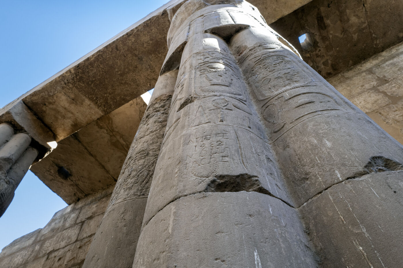 Construits sur une durée de 2000 ans avant J.-C., les temples d’Amon et de Karnak à Louxor sont reliés par l’avenue des sphinx longue de 3 km. Construit en 1200 avant J.-C., le temple d’Amon a perdu son obélisque de droite, offert par l’Egypte et transporté en 1836 sur la place de la Concorde a Paris.