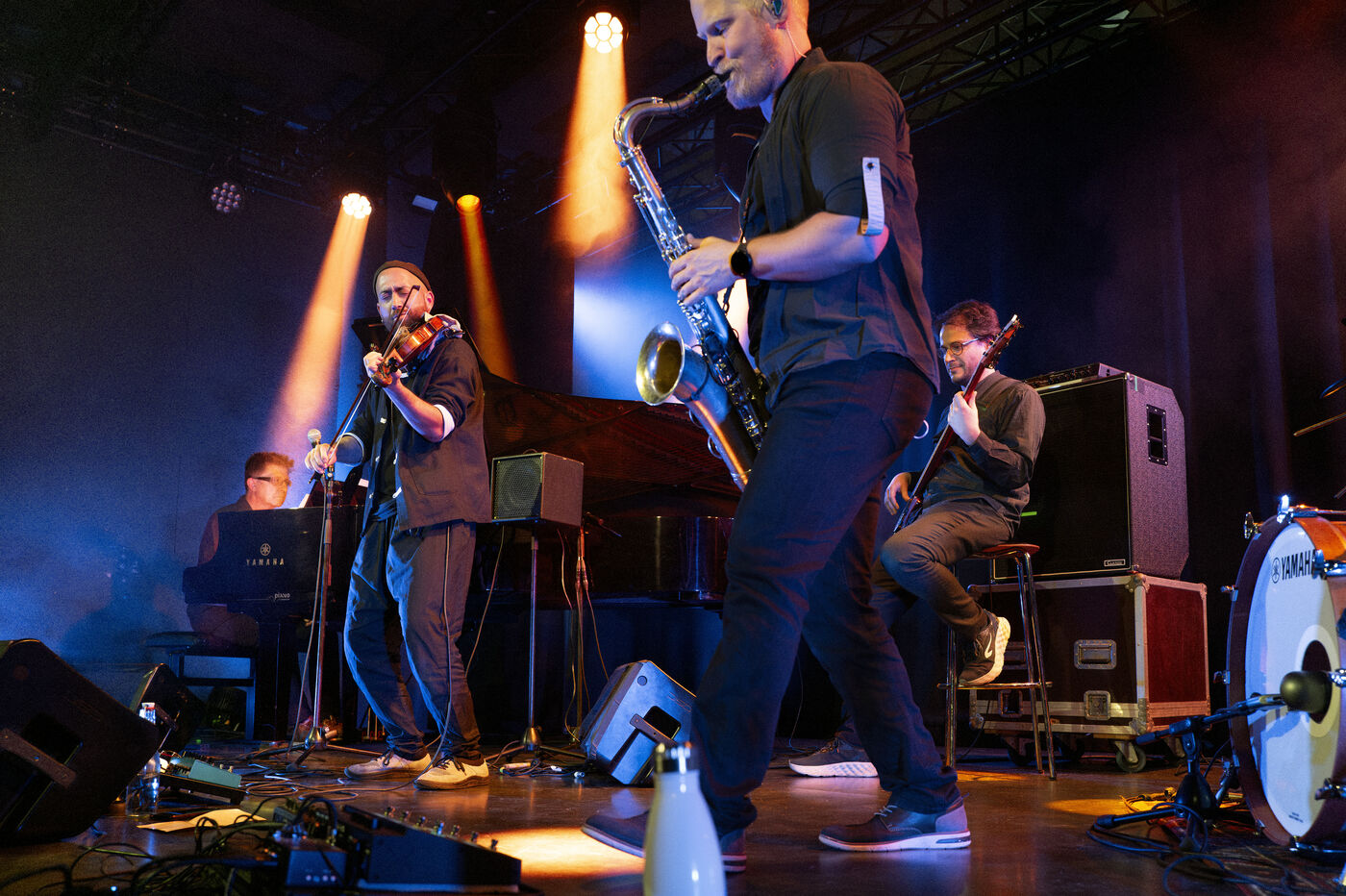 Indo-Swiss jazz violinist and composer Baiju Bhatt performed with his band Red Sun his latest album People Of Tomorrow at the jazz club Les Jumeaux, with Valentin Conus (sax), Emil Spanyi (pno), Blaise Hommage (bass), and Cyril Régamey (drms).