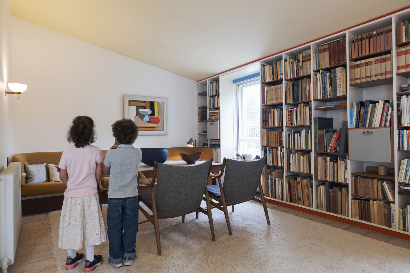 Les meubles sculpturaux de Finn Juhl sont représentés dans toute la maison. Vous y trouverez notamment la Chieftain Chair, le Poet Sofa et la Silver Table, pour n'en citer que quelques-uns. L'art occupe également la maison : les ouvres des principaux artistes danois de l'époque tels que Vilhelm Lundstrøm, Asger Jorn, Erik Thommesen et Sonja Ferlov Mancoba ont été soigneusement sélectionnées par Finn Juhl. Conformément à la vision de Finn Juhl, la maison constitue un Gesamtkunstwerk moderniste où l'architecture, le design et l'art se rejoignent dans une totalité harmonieuse.