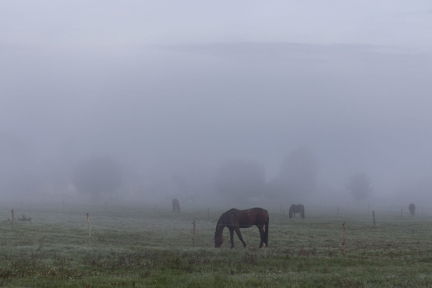 Chevaux dans la brume