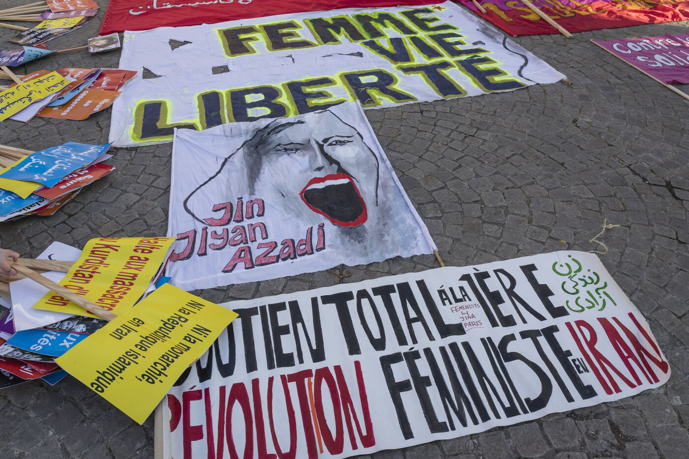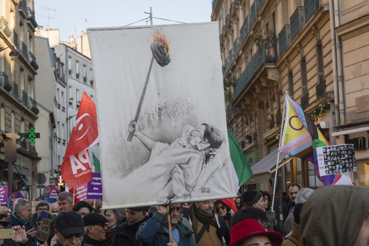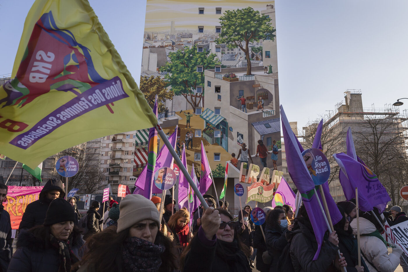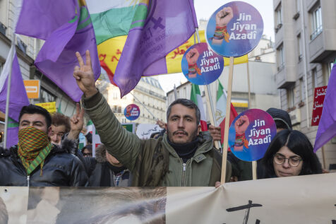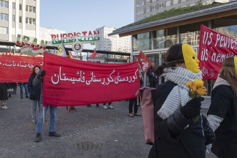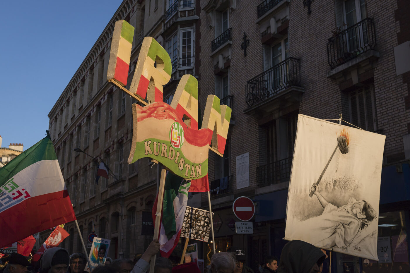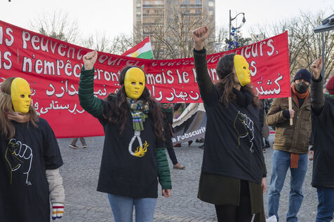 Rassemblement du 21 janvier 2023 à Paris en soutien du soulèvement populaire en Iran, organisé par Roja-Paris, et des collectifs de militantes iraniennes et féministes de gauche.