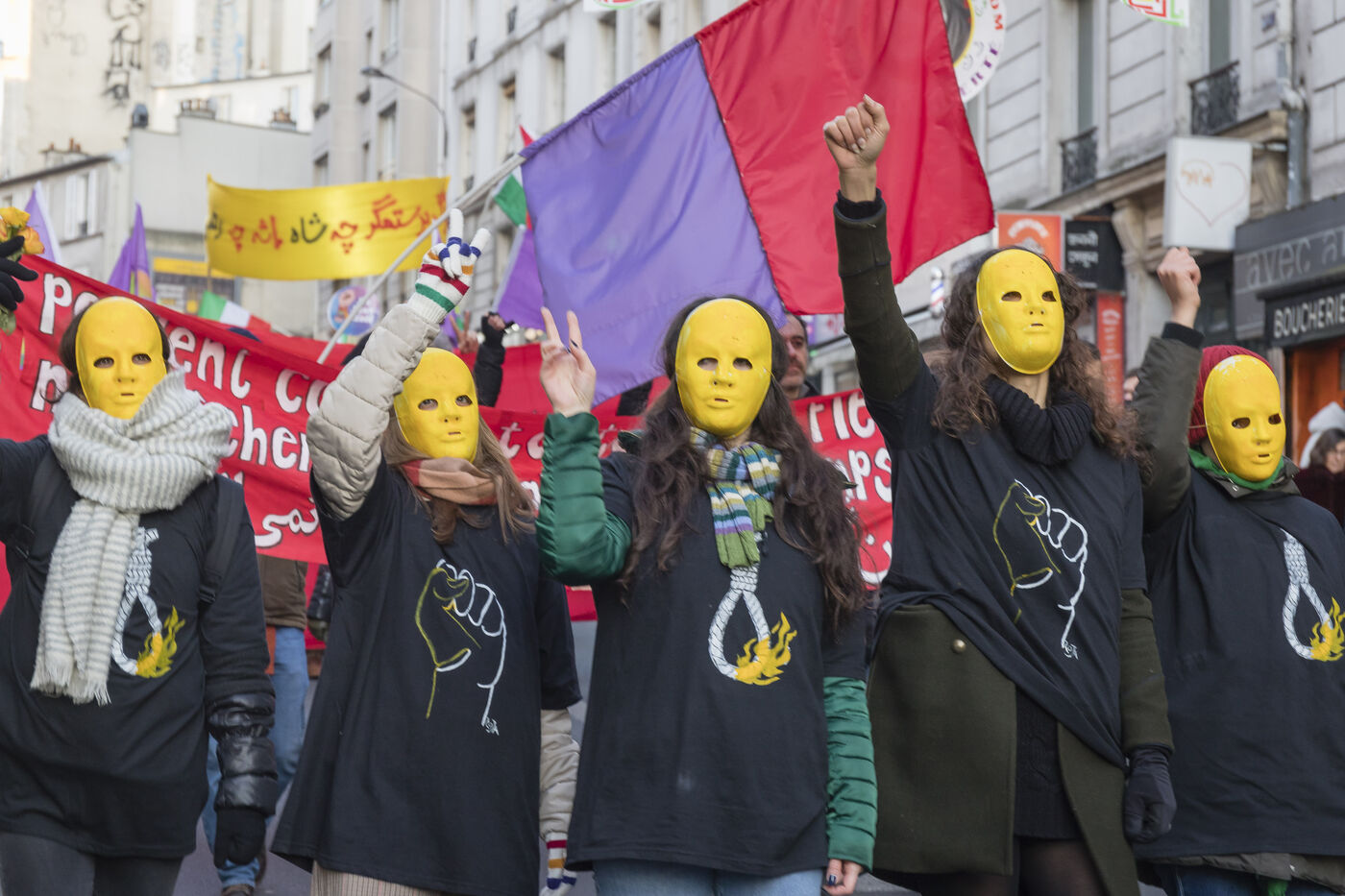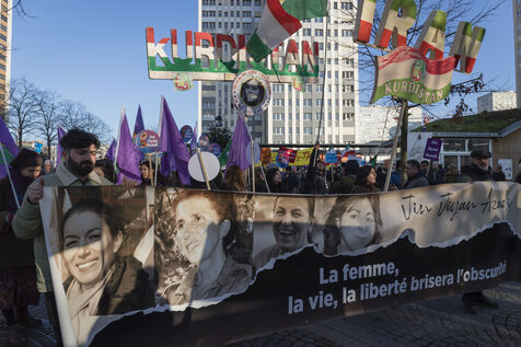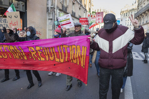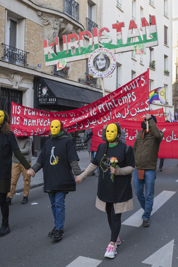 Rally on 21 January 2023 in Paris in support of the popular uprising in Iran, organised by Roja-Paris, and collectives of Iranian activists and feminists of the left. France, Paris, 2023-01-21.