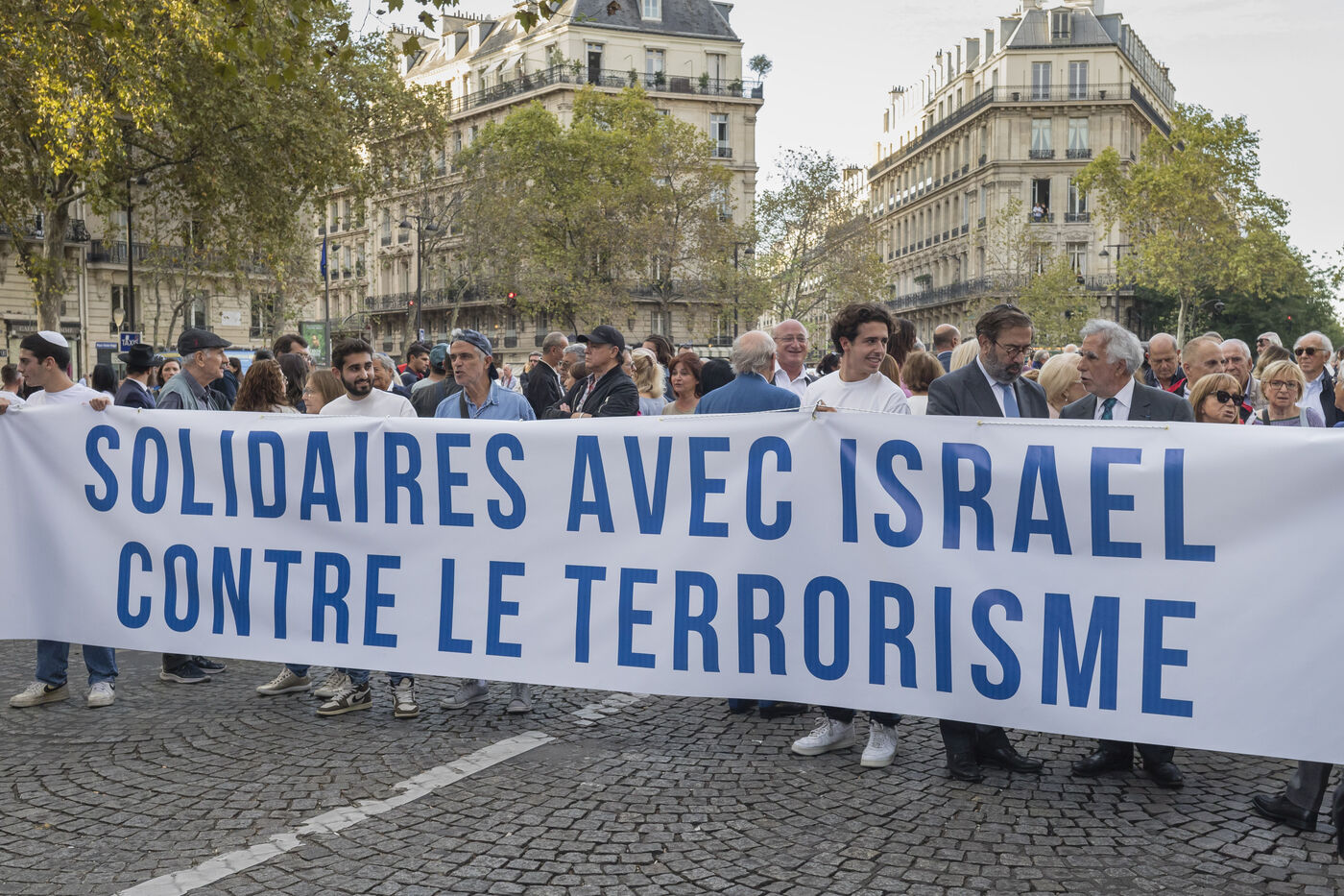 Un rassemblement est organisé ce lundi 9 octobre 2023 à Paris en soutien aux Israéliens attaqués par le Hamas, à l initiative du Conseil Représentatif des Institutions Juives de France (Crif).