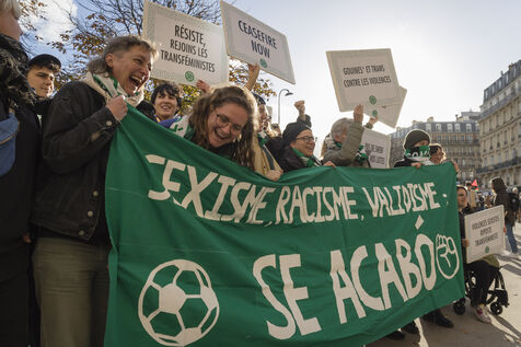 France, Paris, 2023-11-25. To mark the International Day Against Violence Against Women and Gender Minorities, the #NousToutes collective, which brings together feminist, Afrofeminist, transfeminist, LGBTQIA+ and anti-racist organisations, demonstrated in Paris, from Place de la Nation to Place de la République and throughout France, to put an end to sexist and sexual violence.
