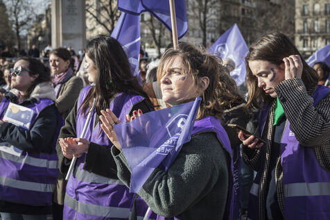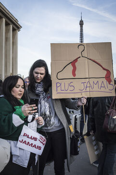 France, Paris, 2024-03-04. Rassemblement à Paris place du Trocadéro pour la retransmission en direct du vote du Parlement pour l inscription de l interruption volontaire de grossesse (IVG) dans la Constitution. Photographie de Pascal SONNET / Hans Lucas.