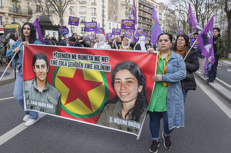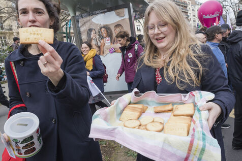 France, Paris, 2024-03-08. International Women's Rights Day, the day the abortion law was enshrined in the French Constitution. Tens of thousands of people marched through the streets of Paris, ending up at the Place de la Bastille. Photography by Pascal Sonnet / Hans Lucas.
