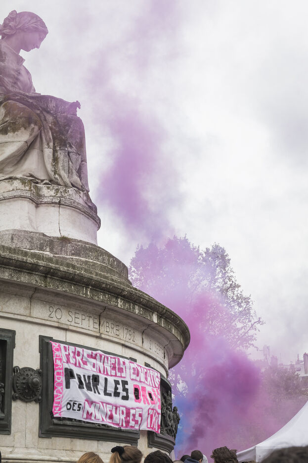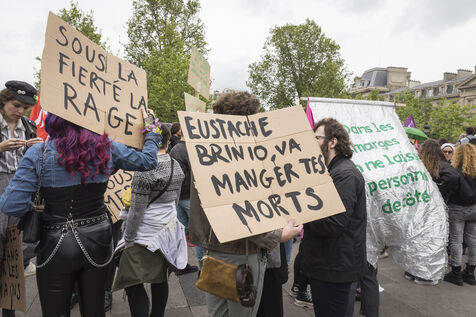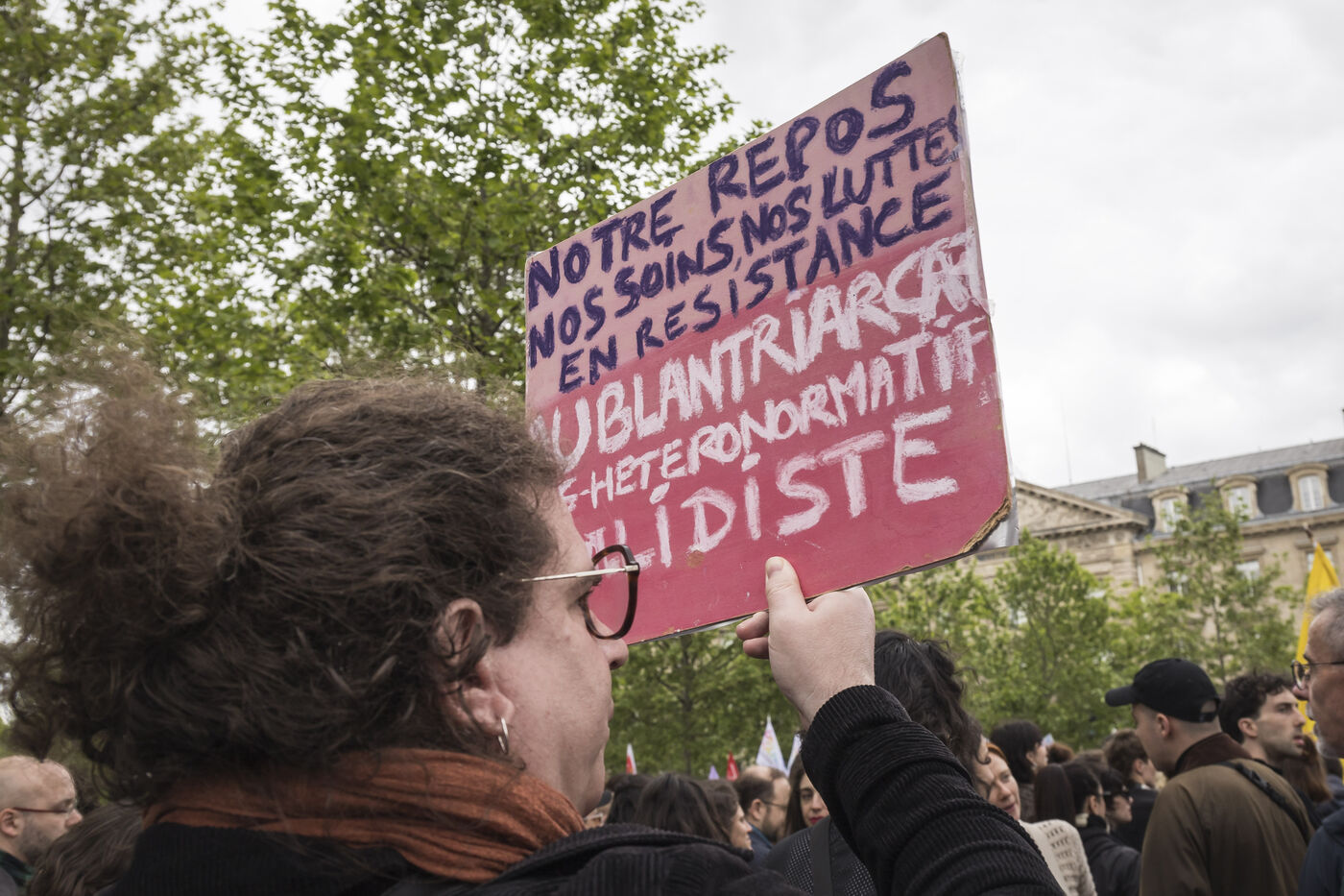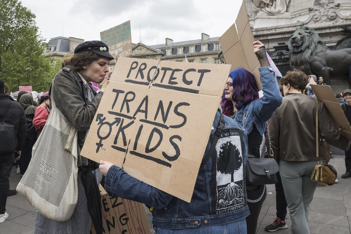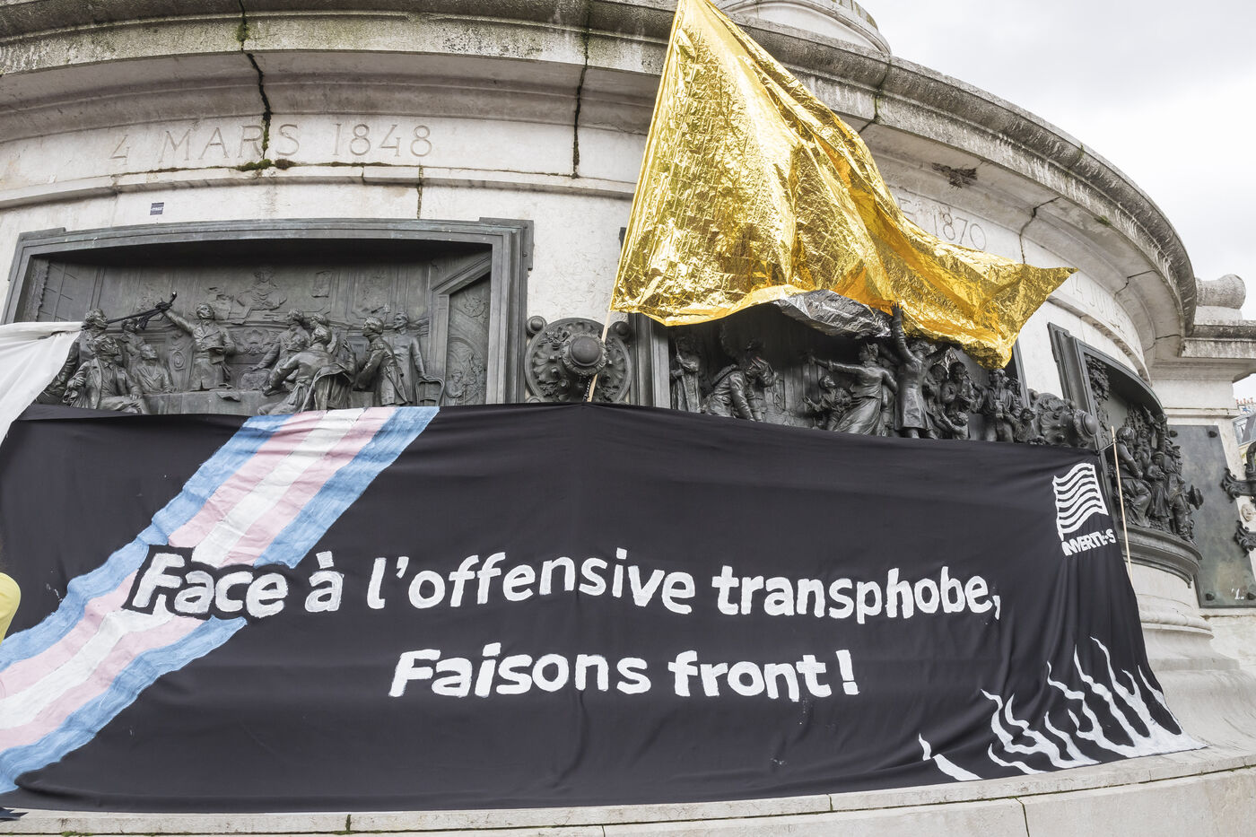 France, Paris, 2024-05-05. The demonstration at Place de la République in Paris on 5 May, called by the LGBTQI+ community to defend the rights of transgender people and the right to control their own bodies. Photograph by Pascal SONNET / Hans Lucas.