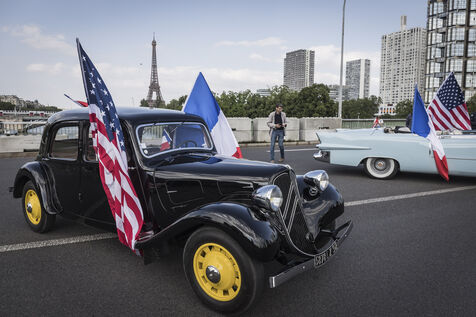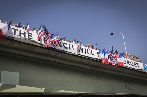 France, Paris, 2024-06-06. L association "The French Will Never Forget", pour l amitié franco-américaine a organisée le jeudi 6 juin 2024 une cérémonie sur le pont de Grenelle à Paris, pour le 80ème anniversaire du débarquement. Photographie de Pascal SONNET / Hans Lucas.