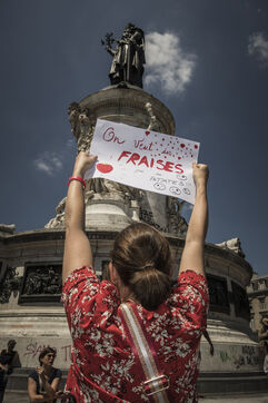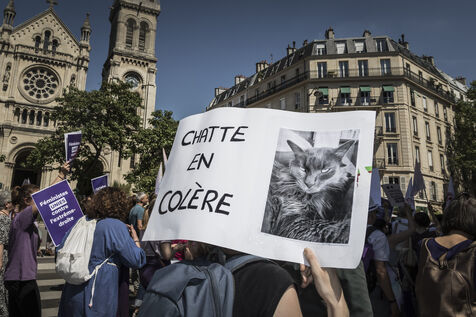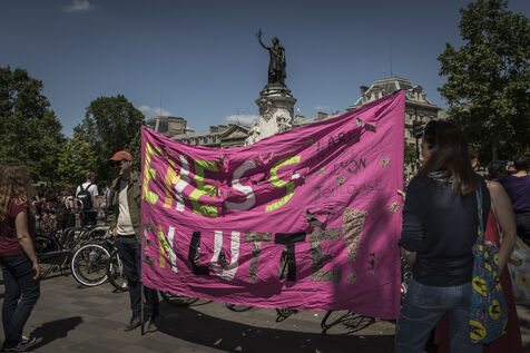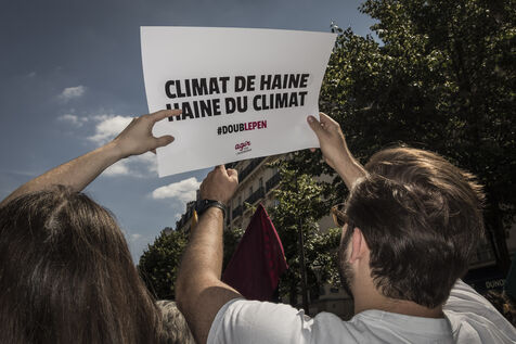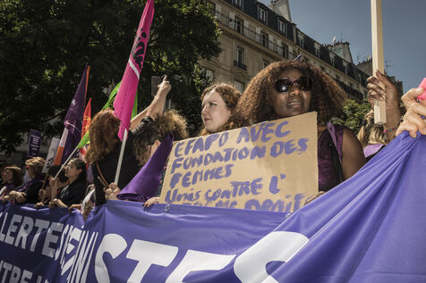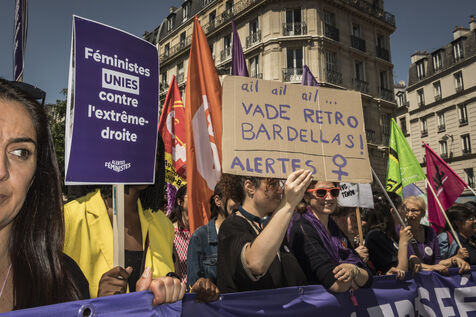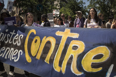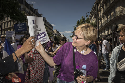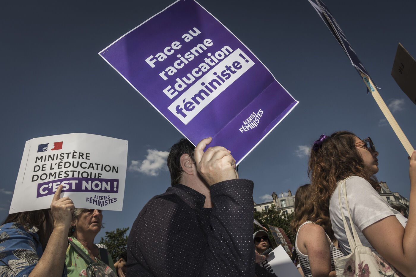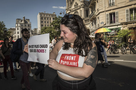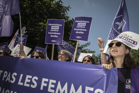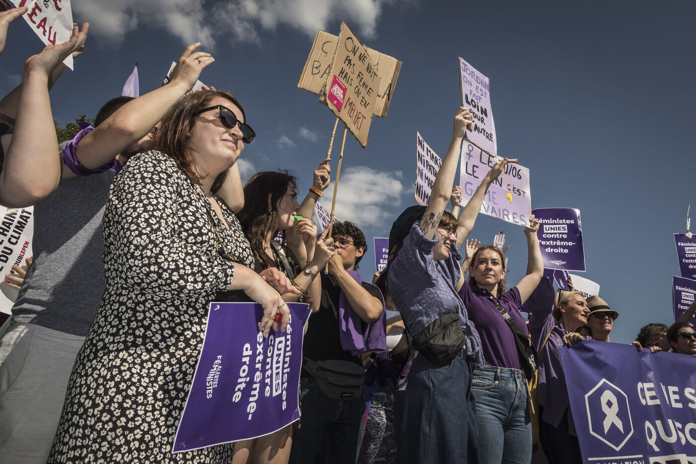 France, Paris, 2024-06-23. Thousands of demonstrators against right-wing extremism marched in Paris from Place de la République to Place de la Nation, on the call of feminist associations and various unions. Photograph by Pascal SONNET / Hans Lucas.