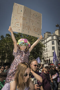 France, Paris, 2024-06-23. Des milliers de manifestants contre l extrême droite ont manifestés à Paris de la place de la République à la place de la Nation, à l appel d associations féministes et de différents syndicats. Photographie de Pascal SONNET / Hans Lucas