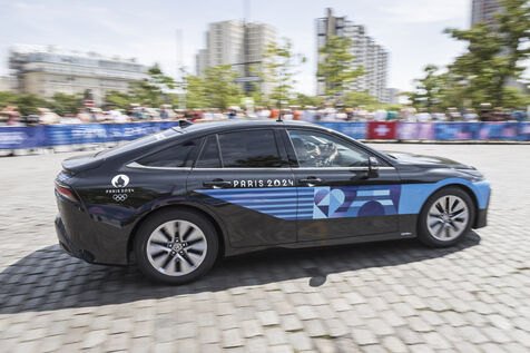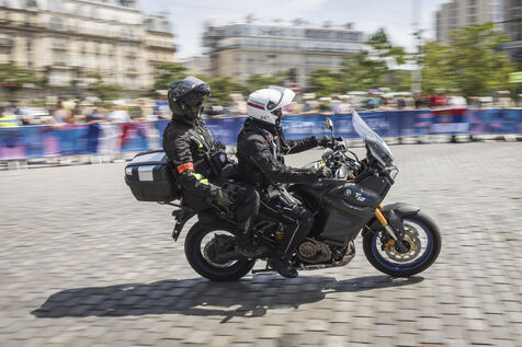 France, Paris, 2024-08-04. Passage par la place d Italie de l épreuve féminine de cyclisme sur route des jeux olympiques 2024 à Paris. Photographie de Pascal SONNET / Hans Lucas.