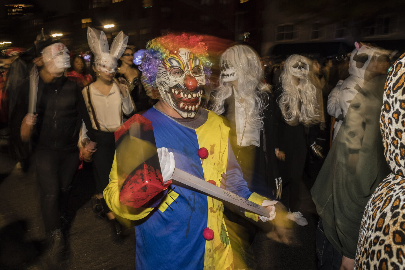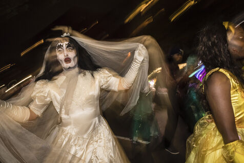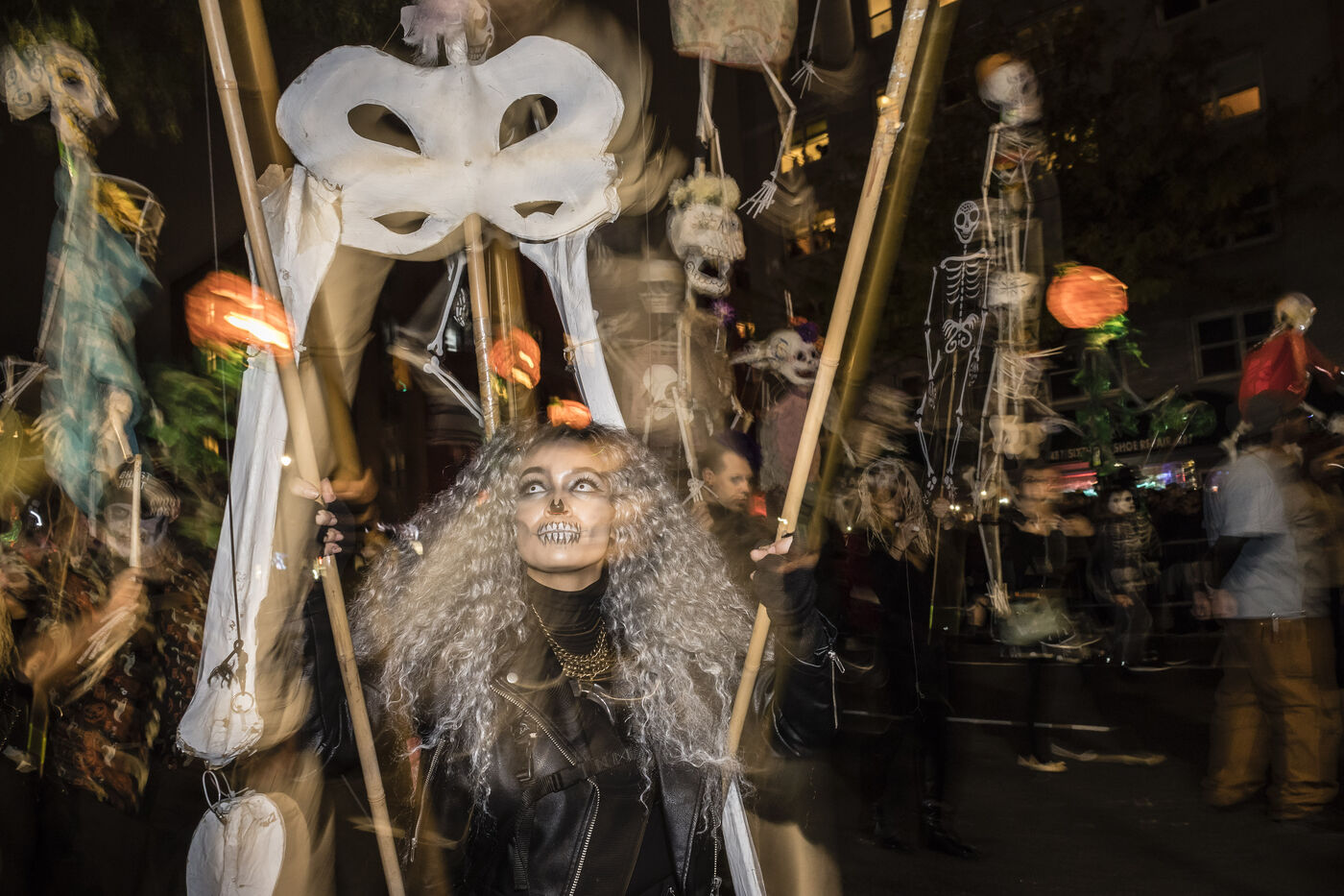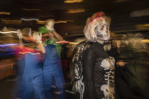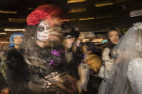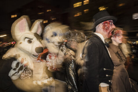 USA, New-York, 2018-10-31. Every year, on the evening of October 31, the Halloween Parade brings together thousands of zombies, witches, monsters and other creatures who stroll through the streets of New York in Manhattan, for a night of costumed horror. Photography by Pascal SONNET / Hans Lucas.