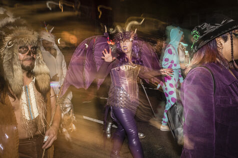 USA, New-York, 2018-10-31. Chaque année, le soir du 31 octobre, la Parade d Halloween réuni des milliers de zombies, sorcières, monstres et autres créatures qui déambulent dans les rues de New York a Manhattan, pour une nuit d épouvante costumée. Photographie de Pascal SONNET / Hans Lucas.