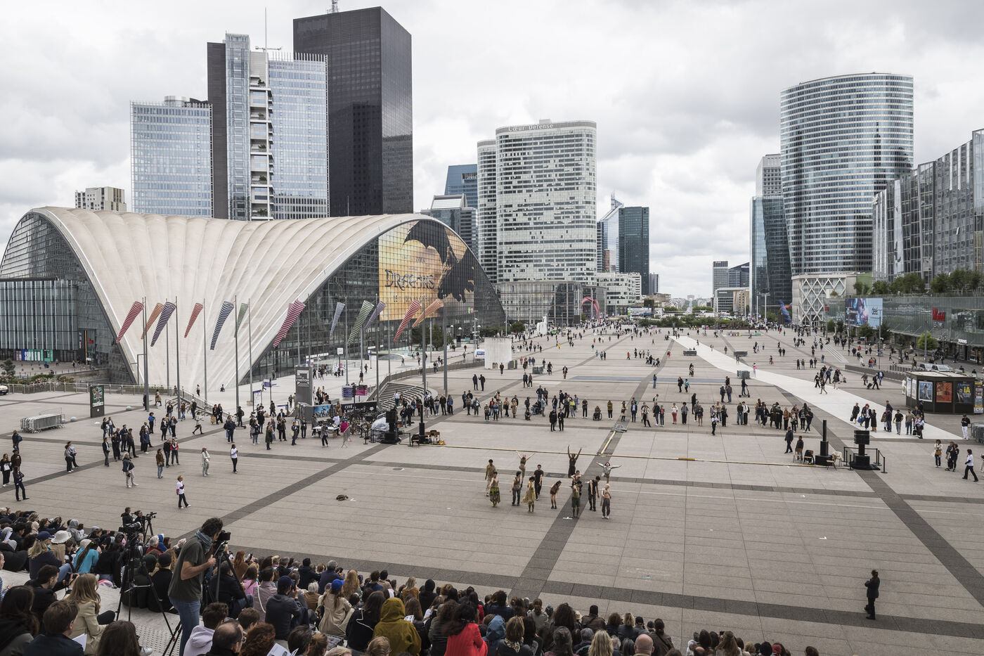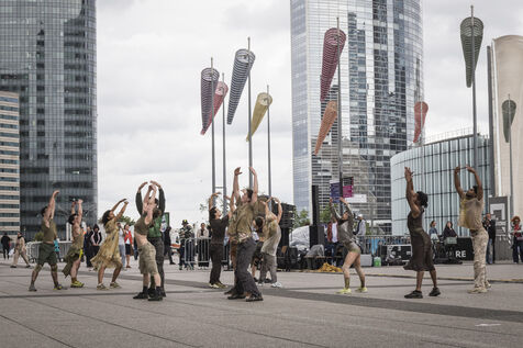 France, Paris, 2025-06-05. Une performance artiste de danse sur l esplanade de la Défense, organisée par Benjamin Millepied, dans le cadre du projet "La Ville Dansée". Photographie de Pascal SONNET / Hans Lucas.