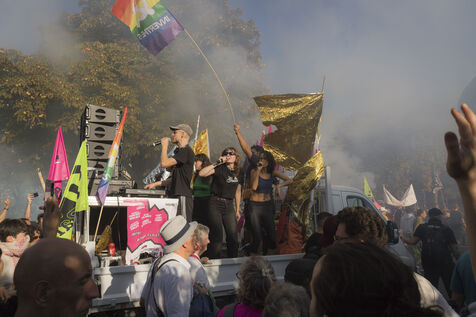 France, Paris, 2025-09-18. La manifestation contre les mesures budgétaires a rassemblée des dizaines de milliers de personnes à Paris. Photographie de Pascal SONNET / Hans Lucas.