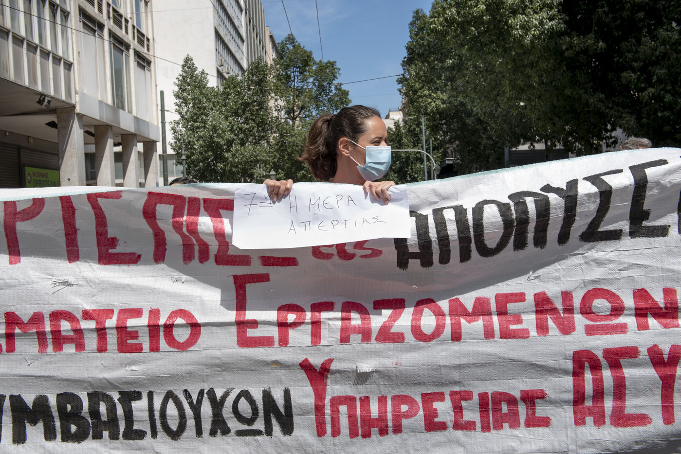 The May Day march was held in Athens on May 1st with wide participation, despite the greek government?s decision to move the mobilisations to May 8th because of the coronavirus security restrictions. During the lockdown period worker?s rights have been at stake, the greek government didn?t find a way to include many freelancers, artists, and contractors scientists into its COVID-19 financial aid programme. What was interesting in this year?s march was that worker?s demands met on the street with those of environmental activists and asylum seekers.