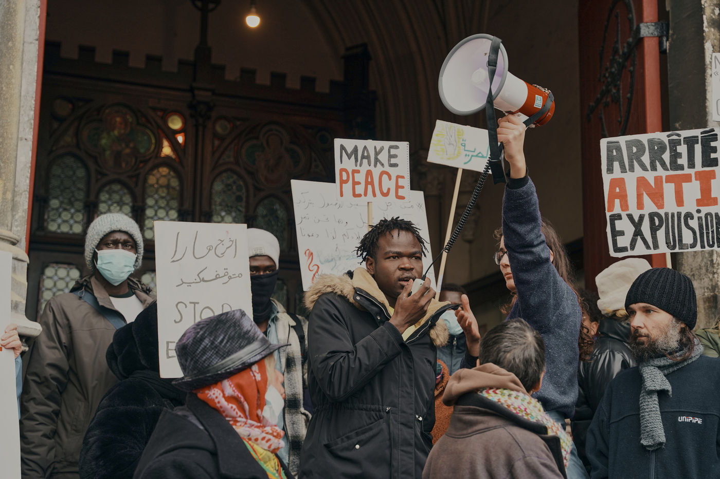 Demonstration this Saturday, November 13 in Calais in support of exiled people. Anaïs and Ludovic have been on hunger strike in the Saint-Pierre church for 34 days. Citizens and associations demand the suspension of evictions, the end of the dismantling of camps during the winter truce, the end of all confiscation of tents and personal belongings of the exiled people and the opening of a reasoned dialogue with the public authorities.