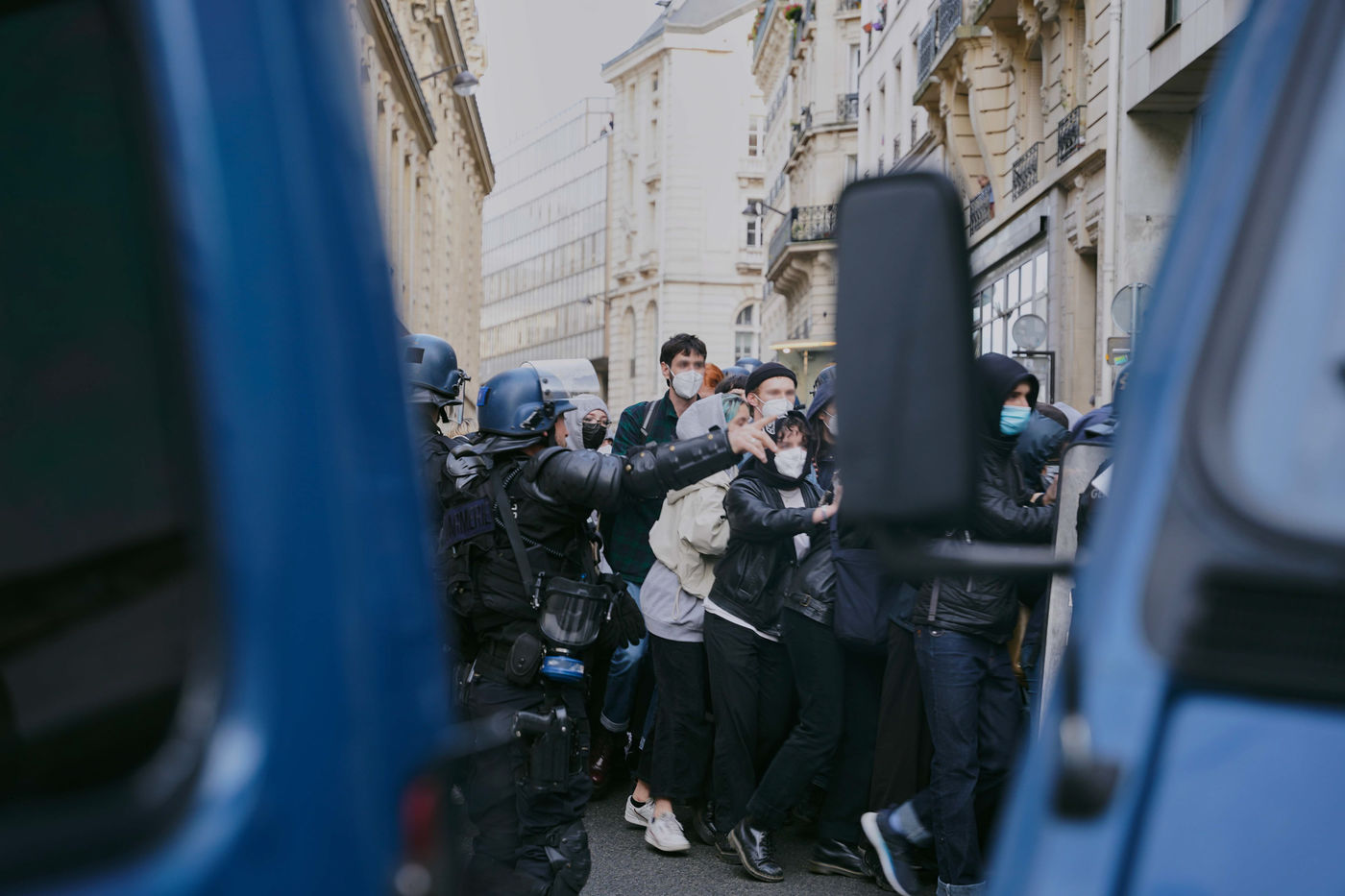 Rassemblement Place du Panthéon ce jeudi en soutien aux étudiants qui occupent une partie de la Sorbonne pour faire entendre leurs voix dans l'entre-deux-tours de l'élection présidentielle et alerter sur les questions de justice sociales et d'urgence climatique. Un important dispositif policier a été mis en place pour bloquer les entrées et sorties du bâtiment. Des centaines d'étudiants venus manifester pacifiquement sont successivement nassés et gazés par la police et la BRAV.
