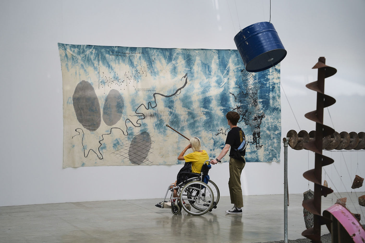 Abbas Akhavan, Amakaba x Olaniyi Studio, Asinnajaq, Huma Bhabha, Sebastián Calfuqueo, Megan Cope, D Harding, Karrabing Film Collective, Kate Newby, Daniela Ortiz, Solange Pessoa, Yhonnie Scarce, Thu-Van Tran, Judy Watson shows us that we are not "in front of the landscape", not "on the earth", but rather we are one with it, creating the "community of the soil" that Rachel Carson spoke of at the origin of the environmental movement.