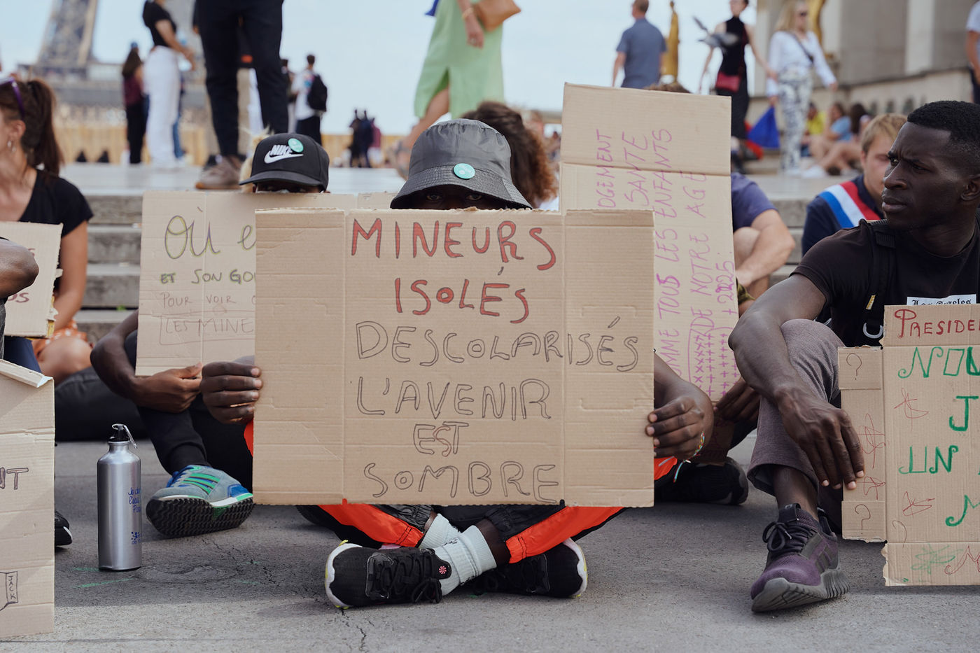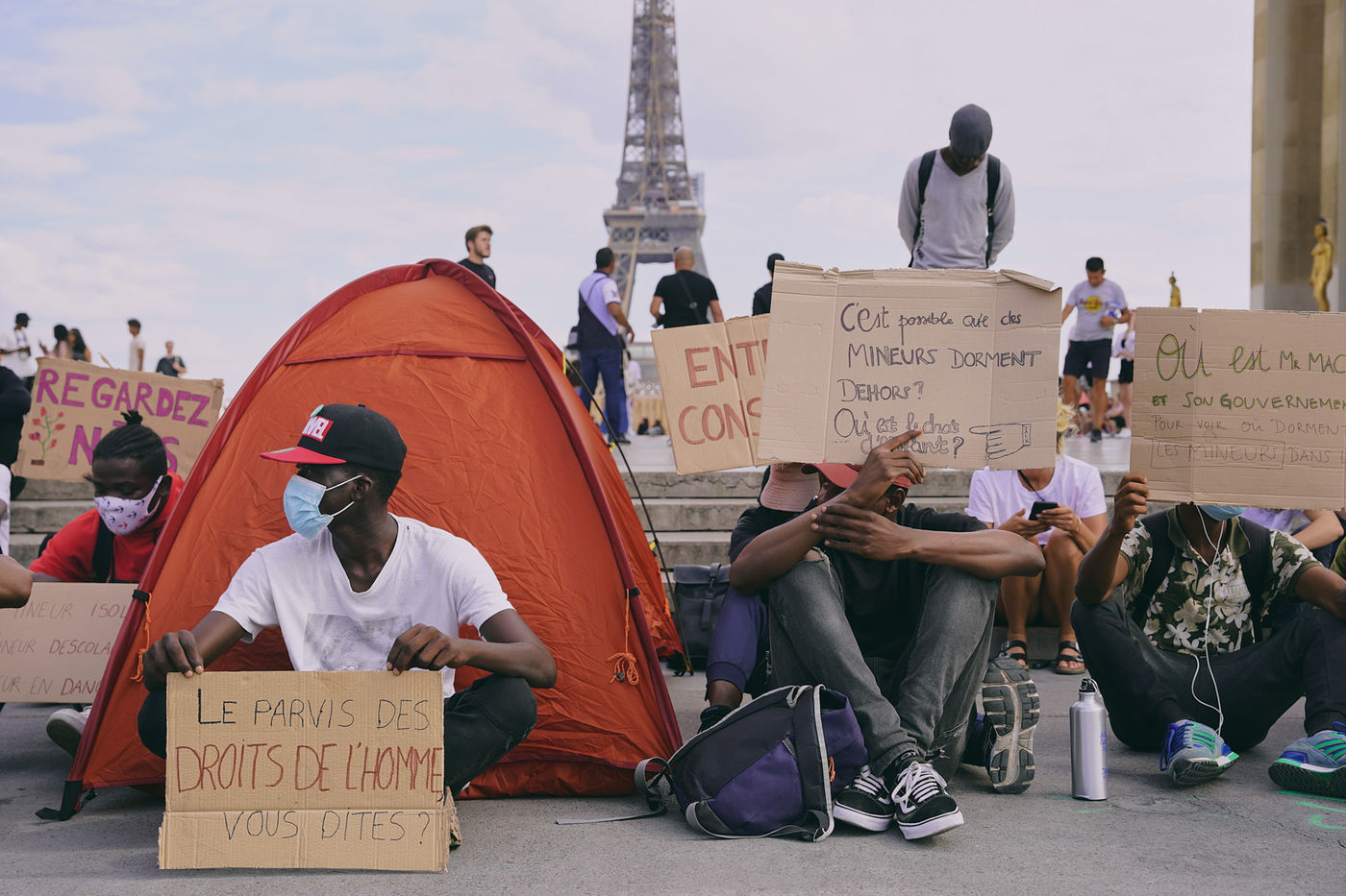 For almost 100 days, a hundred unaccompanied minors have been surviving on the streets in a camp set up at the Place de la Bastille. In spite of the numerous alerts launched by the association on their state of vulnerability, the difficult living conditions and the danger of the street amplified during the days of heat wave and storm, the government did not cease ignoring their calls for help. In spite of their desire to go to school, they are denied this right. Without residency, it is almost impossible for them to access the tests required to attend school.