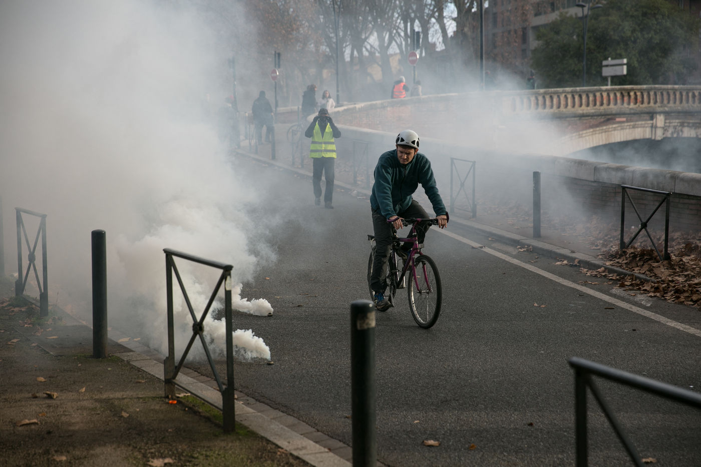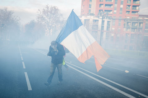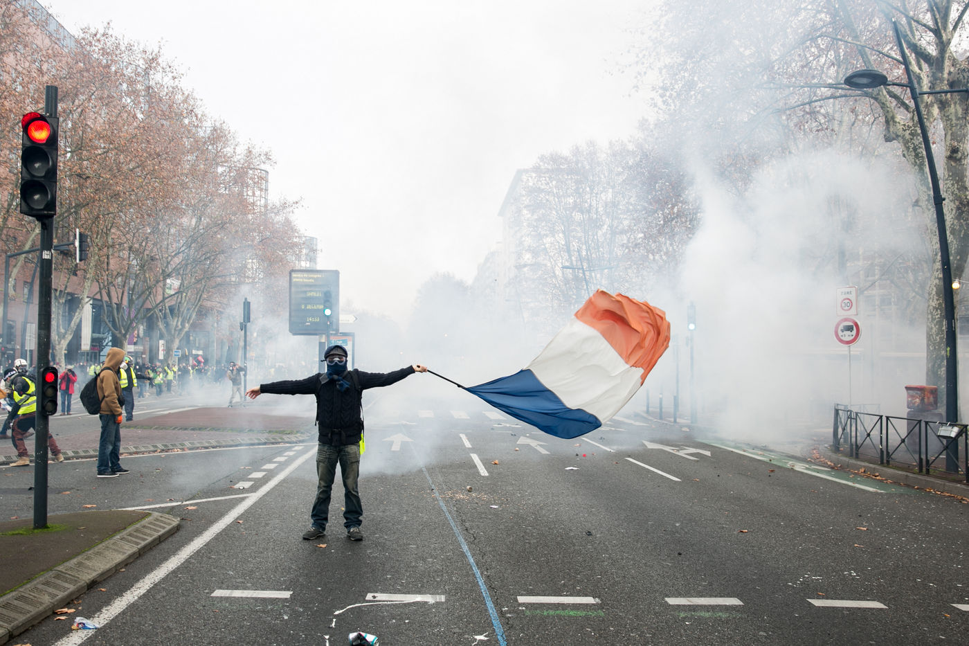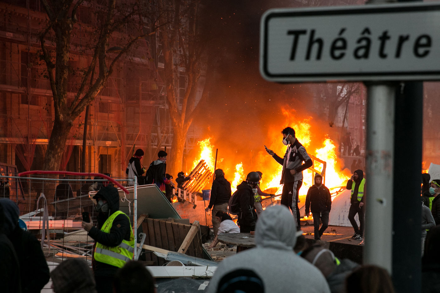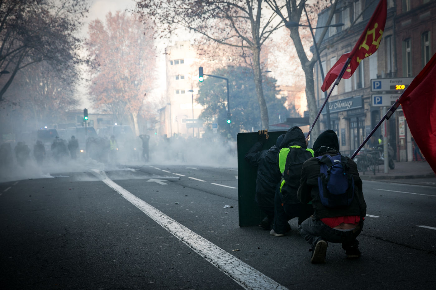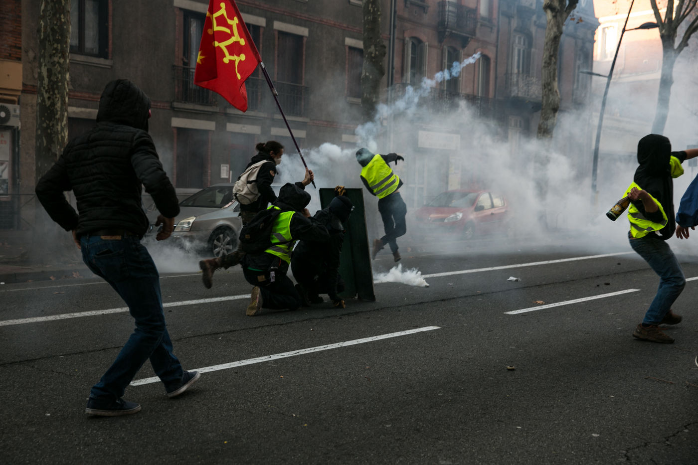 Manifestations des gilets jaunes le 8 décembre 2018 dans le cadre de l'acte IV de leur mouvement. A Toulouse, une manifestation réunissant plusiers milliers de personnes dégenère rapidement en guérilla urbaine.