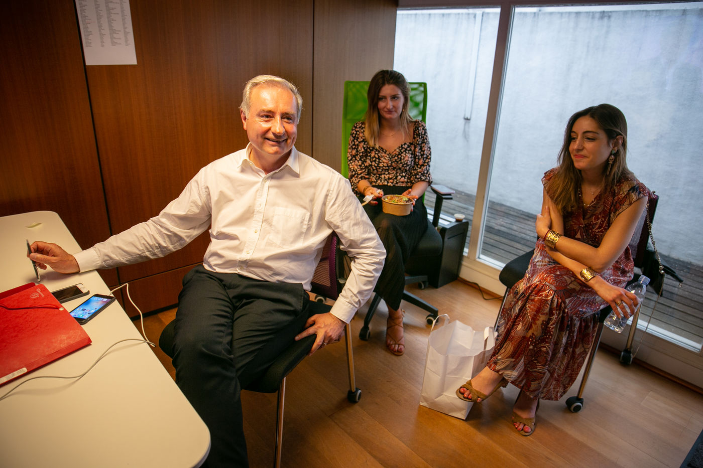 In Toulouse, the mayor, Jean-Luc Moudenc (LR - Aimer Toulouse - LREM) - re-elected with 52% of the votes cast - awaits the results of the second round of the municipal elections in a private room with his two daughters, Estelle Moudenc and her sister, 28 June 2020.