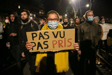 In full confinement, several thousand people demonstrated against the so-called "global security" law, 27 November 2020