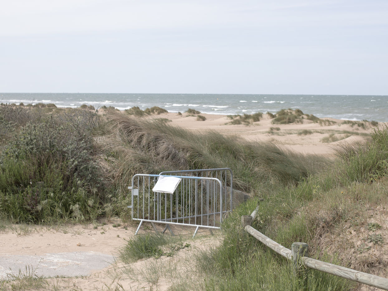 Malgré le déconfinement, les plages et aires de jeux restent fermées en Normandie. Cet après-midi à Merville-Franceville, très peu de promeneurs et plage totalement déserte.