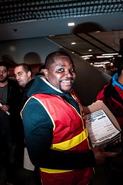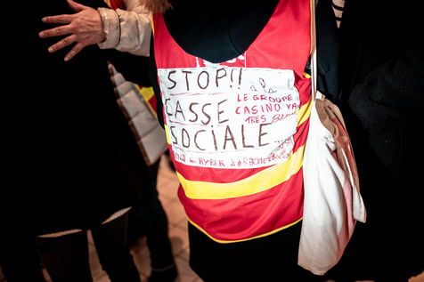 Les salaries du Groupe Casino occupent et manifestent au Casino de Porte d'Ivry contre les cessions d'activites. Le groupe Casino regroupe les magasins Casino, Franprix, Leader Price, Monoprix...