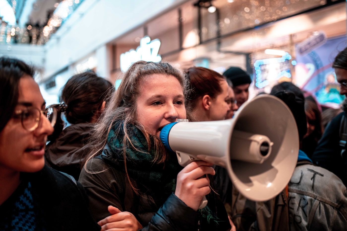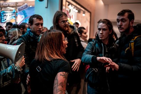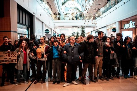 Pour manifester leur opposition au Black Friday, à la surconsommation, XR organise le Bloc Friday, en occupe un symbole de la surproduction et de la surconsommation.