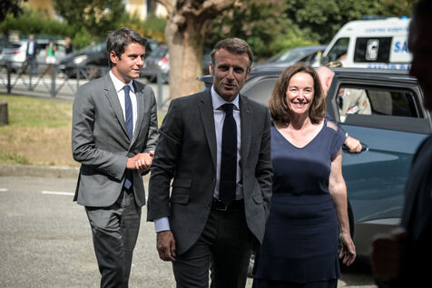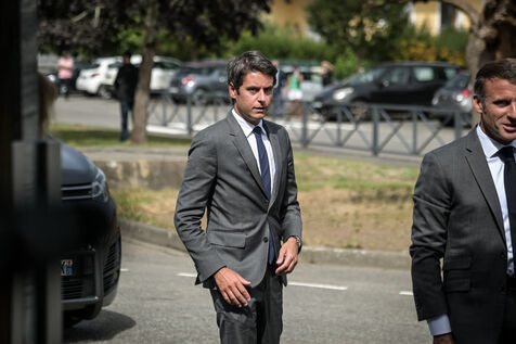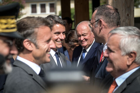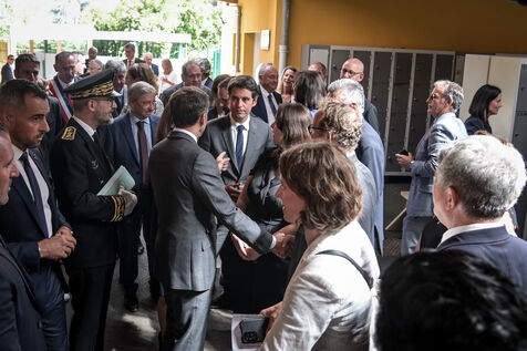He is accompanied by the Minister of National Education, Gabriel Attal; the Minister of Sports, Amélie Oudéa-Castéra, and the mayor of Pau, François Bayrou, secretary general of the National Council for Refoundation.